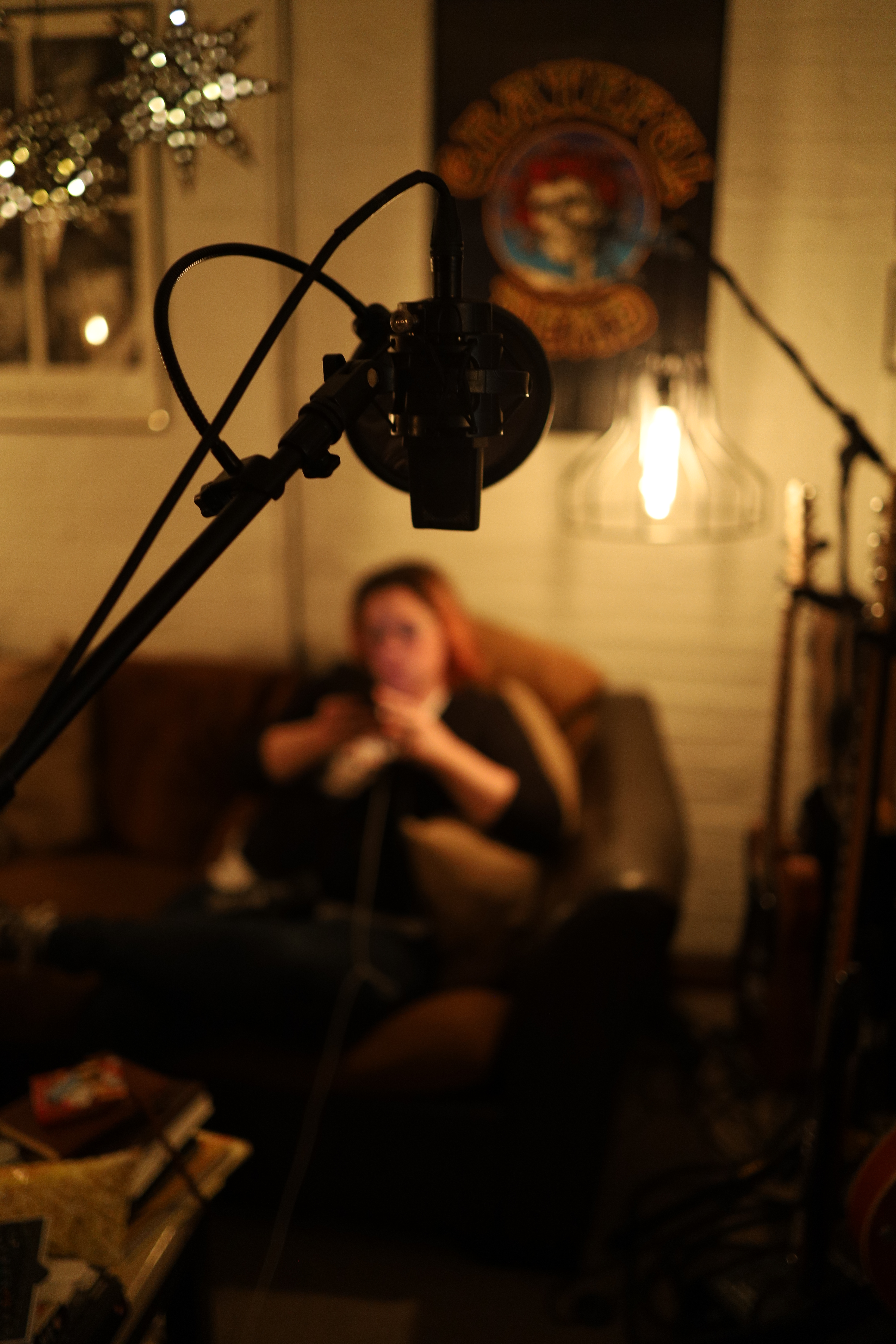 Caryn’s mic, Caryn in the background.