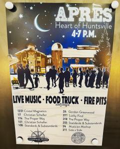 We’ll see people out in the world again this Saturday, January 28th, from 4-7pm at Compass Rose Lodge for their Apres Ski Series. It’s outside, but surrounded by fire pits and the warmth of our music. Get a snack and some hot chocolate and you’ll have a great time.