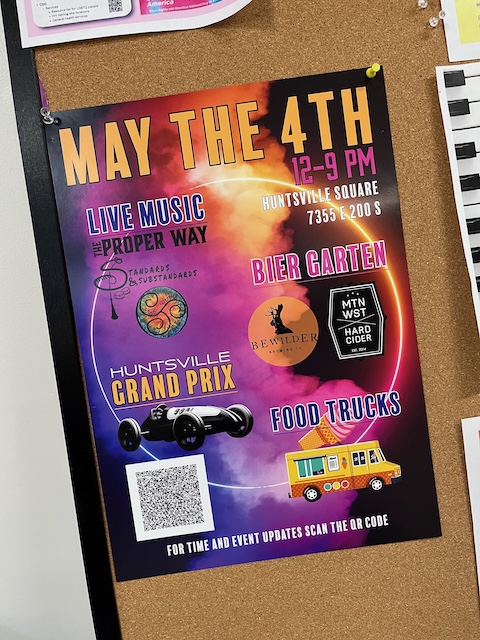 This prominent display puts us in the mix alongside other friendly musicians (our favorite) and food trucks (also our favorite) and beer (arguably our most favorite for Tim and Adam, or at least a close second after music) and cycle carts (you just have to see to understand, a steampunk grownup version of go-carts …. but not really) and most especially a good time among the good vibe in Huntsville on Saturday.