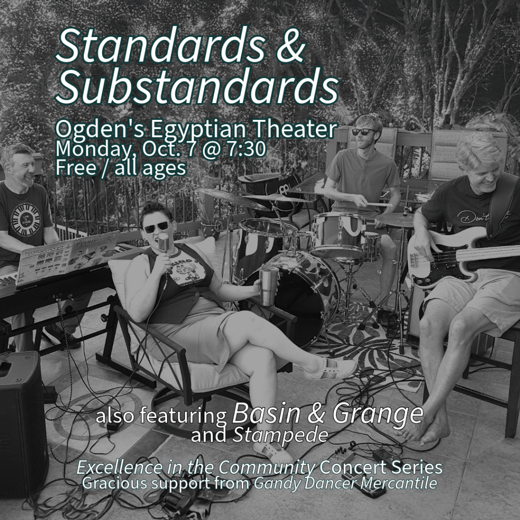 Thanks to the good folks at Gandy Dancer Mercantile and Excellence in the Community, we get to play on the stage of Peery’s Egyptian Theater in Ogden on Monday, October 7, at 7:30. We get a full stage, big sound, bright lights, and a grand piano; and you get theater seats under the stars of the historic architecture.